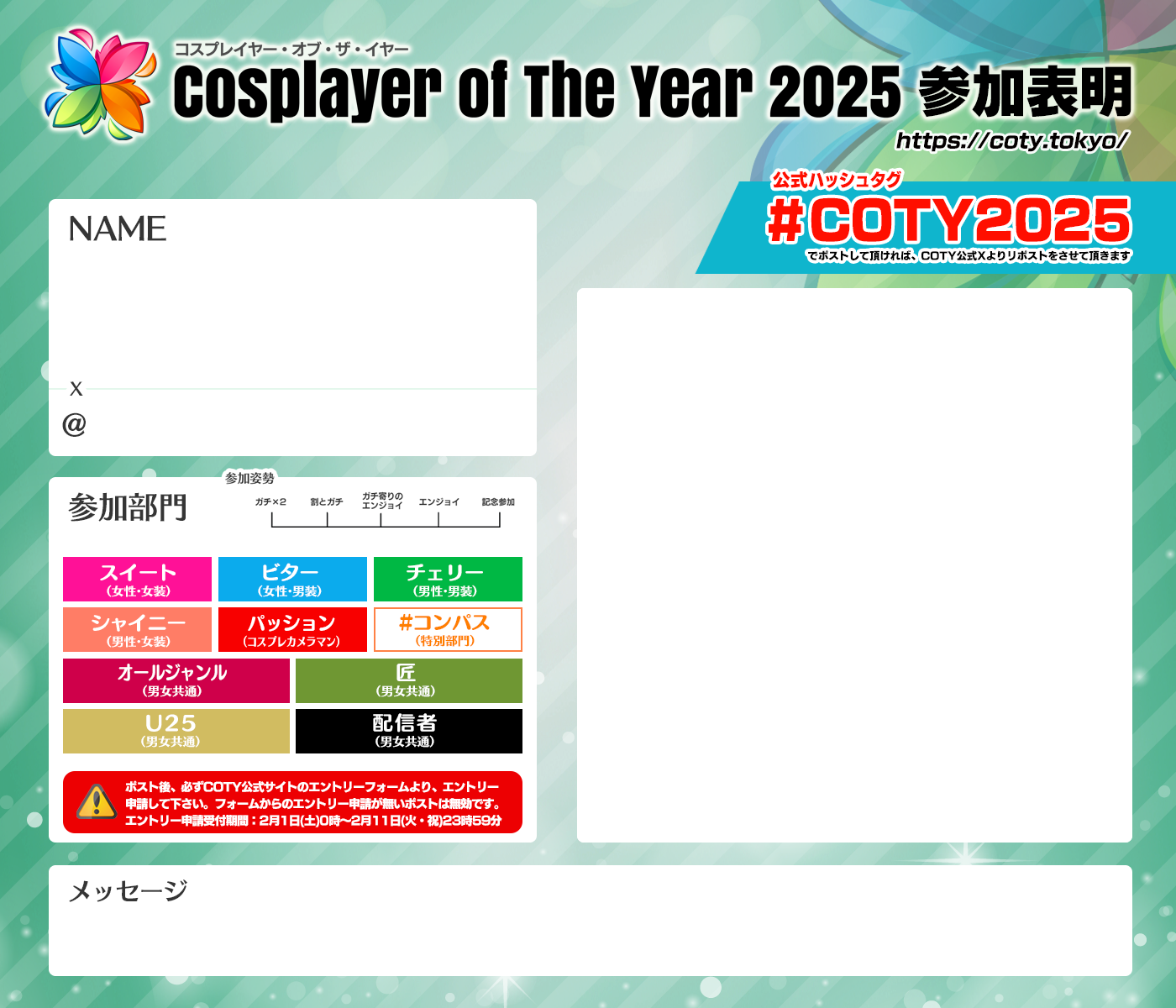 名称:Cosplayer Of The Year 2025 (コスプレイヤー・オブ・ザ・イヤー 2025)